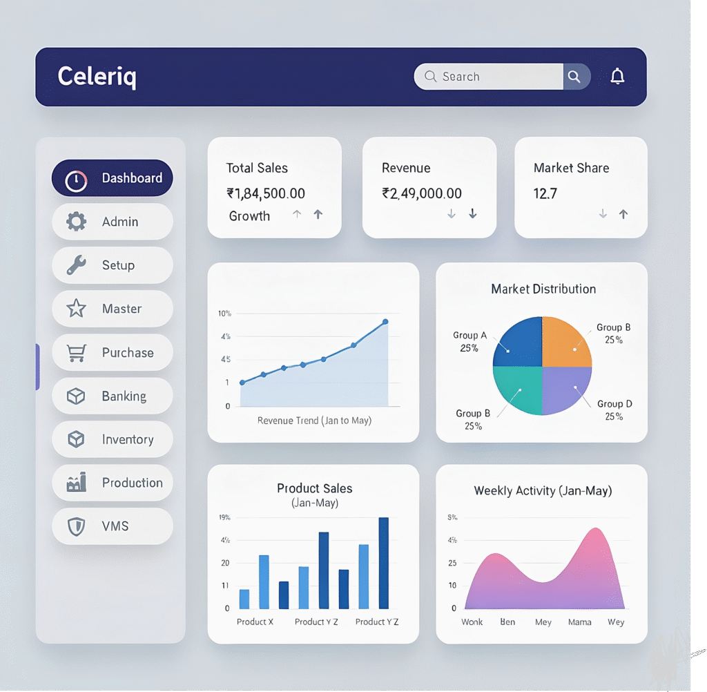 Celeriq ERP streamlines your business operations with smart, scalable, and intuitive software. Optimize workflows, make data-driven decisions, and tackle your top enterprise challenges with ease.